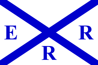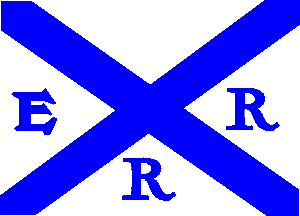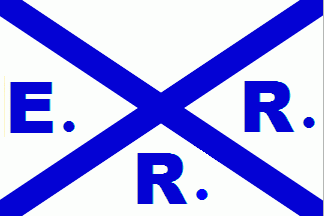 The company was located in Stettin. The white flag was divided by a blue saltire. In three quarters were blue, unserifed dotted capitals "E" (hoist) and "R" (fly and bottom).