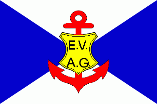 flag, but in the yellow shield are black dotted capitals “E.V.” over “A.G.”.