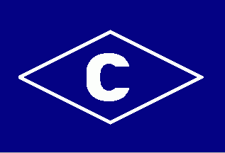 It is a dark blue flag with a white capital "C" in the centre of a blue rhomb fimbriated white.