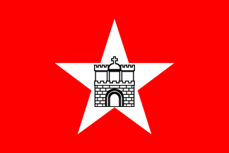Jorge Candeias wrote: This one is red with a big white star in the center, charged with a white castle outlined in black.