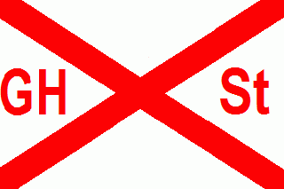 According to source Hamburg shipowners register provides evidence of the company's existence at least from 1876 until 1888. The white flag is divided by a red saltire. In two quarters are red inscriptions: "GH" (hoist) and "St" (fly).