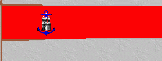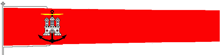 The ratio was unknown. The image shows a Flüger reported 1897. For further information about Flüger see here. The Flüger was red with the image of Admiralty flag, the castle being masoned black, shifted to the hoist. The flag was only used by pilot vessels being on duty in their base.