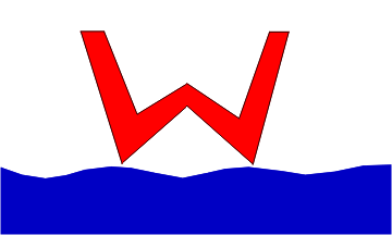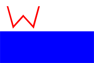 it was red with a broad white horizontal band bearing a blue "W" (see below),