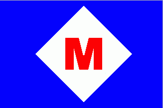 Flag#1: It is a celestial blue flag with a white diamond, containing