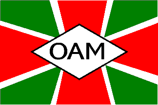 white; white diamond, black "OAM".