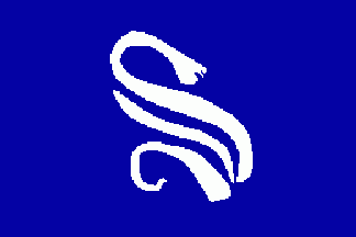 It is a plain dark blue flag with a white “S” in its centre, which