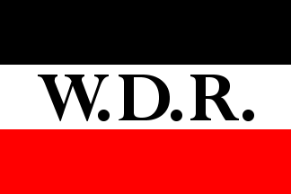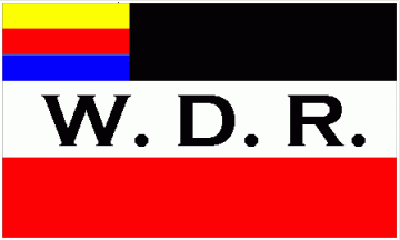 “W.D.R.”. The canton is a yellow over red over blue horizontal tricolour.