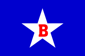 Another one from my old files, but now the caption is clear: the name of the company is F. M. Bruhn. The flag is, again, blue and, again, contains a white star, only this time with 5 points and bearing a red "B" within.