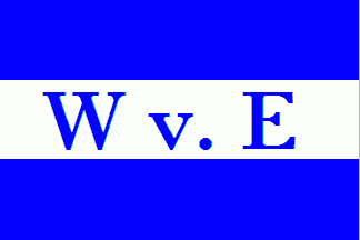 The flag is a horizontal triband of blue and white with three letters, apparently in black (doubtful), in the center: "W v E".