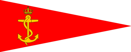 as a 2:5 red triangular pennant with a golden crowned fouled anchor. A note explains