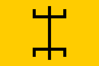 The flag is 2:3 (approx.), gold, with the black symbol that was
