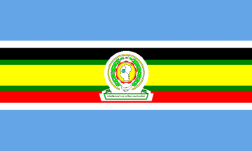 The flag was the result of a competition, and the product is a mishmash of the three flags of Uganda, Tanzania and Kenya and the little map, on a blue background.