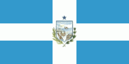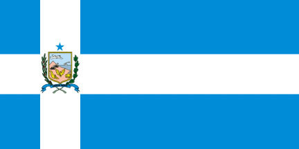 white - sky blue triband with the actual coat of arms in the