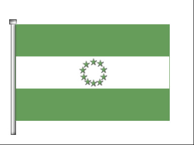 drawing, with a ring of ten green stars: The flag is shown with