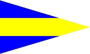 horizontally divided blue-yellow-blue. The burgee is also painted