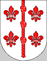 encircled in a rope, with the knot below the fleur-de-lys. This