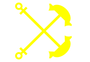 flag, white, two yellow anchors, crossed, the stocks turned towards the hoist,