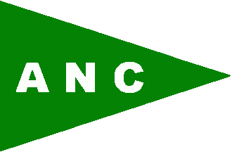 It is a plain green pennant with white capitals “ANC”.