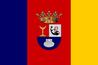 The flag was selected 1998 in a contest (the rival was a plain red flag with arms) and reported in [my] Flag Report (information provided image by J.A. Jiménez).
