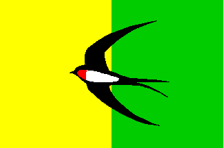 In the 1960s, the present Badiá del Vallès was developed by immigration from the southern Spain and divided in two municipalities – Barbera del Vallès and Cerdanyola del Vallès. In 1994 the two villages were merged as Badiá del Vallès and the coat of arms was designed. The background shows the colours used by the two different municipalities. A swallow was used as a symbol of emigration.