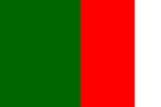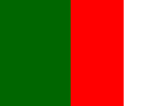 Vertically striped dark green, red and white in proportions 4+3+2. Colours from the coat-of-arms. Ratio 2:3. Flag adopted 10th August 2000. Source for image and text: Fluvià 2001. It is noteworthy that most shades of green in Fluvià 2001 are described as simply 'green' (verd) even though they are illustrated as light, medium and dark green. However, the flag of Puigdàlber is officially described as verd fosca, 'dark green'.