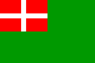 Green flag with a red canton, half as high and long as the flag, bearing a white cross whose arms are as wide as 1/12 of the flag's height. The field has the same colour as that of the coat-of-arms. The canton is the same as the flag carried on the coat-of-arms by the paschal lamb, which stands for St. John the Baptist, patron of the municipality. Ratio 2:3. Flag adopted 3rd November 1999. Source for image and text: Fluvià 2001.