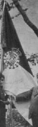 Another photograph in [frz81] shows a good view of the coat-of-arms (scan here), which appears to be a mistaken version of the royal arms – also shown in some early 20th century paintings of the royal standard, for example one mentioned in Calvo and Grávalos 1983 [cag83] – , where the royal crown is replaced by that of the heir prince, thus with only four arches – of which three visible – as in the current Prince of Asturias' standard.