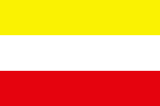 This flag was proposed for approval at the provincial delegation, but has not been adopted officially. It is based on the colours of the 3th field of the shield (azure field, golden chief, argent eight-pointed star).