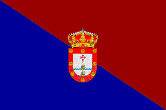 Coat of arms: Per fess, 1. Argent a Cross of the Order of St. James gules, 2. Argent two galleys per pale on waves azure and argent. A bordure gules charge with eight scallops or. The shield surmounted by a Royal Crown.