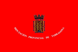 Tarragona has a red flag with coat-of-arms and below the text Diputación Provincial de Tarragona; source: photograph in the SEV archives. It is unofficial and is used only in some events. The described pattern is dated c. 1975.