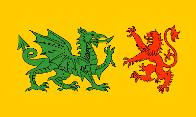 Spurious Contemporary Reconstruction of "Kingdom of Gallaecia" FlagBetween AD 407 and 410 about 30,000 Swabian-Germans arrived to the Roman province of Gallaecia and took over the administration of the territory from the Roman Empire. The first Swabian king, Hermeric, established feudal relations with all the Galician chieftains, founding a kingdom known for two centuries as "Galliciense Regnum" (Kingdom of Gallaecia) or "Regnum Suevorum" (Kingdom of the Swabians). Anjo Abelaira, 06 Apr 2005 One cannot enough stress the fact that this flag never existed. It is not even worth discussing – the reasoning behind it is pure fiction. Not to mention the fact that the dragon appears to be borrowed from the Welsh flag and the lion from (IIRC) the Heraldique Europeene website. Santiago Dotor, 07 Apr 2005 The oldest historical flag in Galicia: in February 15th 1669 the General Council of the Kingdom of Galicia declared that "(...) from then onwards it was decided to erase the green dragon and the red lion (arms of the Swabian kings who ruled this country at the time) and bring onto the golden field of the arms the consecrated wafer (...)."This document describing the flag of the Swabian kings of Galicia was was brought back to the public eye in 1927 by historian Pérez Constanti in his book "Notas Viejas Galicianas" (Ancient texts from Galicia). Based on that historical description from the Council of the Kingdom of Galicia in 1669 we have made a modern flag featuring a green dragon and a red lion over a gold field. The position on the flag of the dragon and the lion has been determined according the common features of European heraldry, which is two rampant beasts facing and confronting each other. This flag can also be used as a historical symbol by many territories which used to be part of the ancient Kingdom of Gallaecia: modern Galicia, northern Portugal, and the neighbouring regions of Bierzo, Asturias, and Leon. Links:
