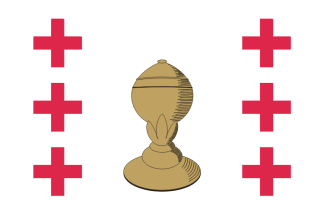 This is the flag of the old Kingdom of Galicia during the XVI, XVII, XVIII and XIX centuries, shown in Diderot & D´Alembert´s Encyclopedia. The flag is white with six red crosses and a "cáliz" in the center. This flag stopped being used at the beginning of the 20th century.