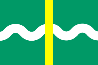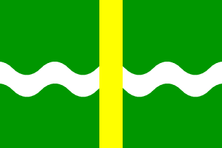 Compare the municipal arms on Ralf Hartemink's site where we find the same elements, only on the flag the tower has been rendered in an abstract way.