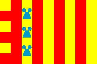 Keywords: verges | chessrooks: 3 (blue) | stripes: 9 (yellow-red) | stripe: hoist (chequered) |