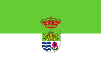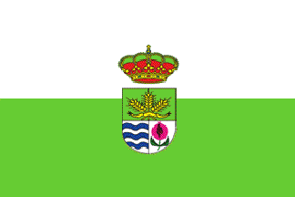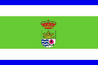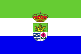 Coat of arms: Per fess, 1. Vert threee wheat spikes per bend, pale and bend sinister tied in base by a scroll all or, 2a. Argent three fesses wavy azure, 2b. Argent a pomegranate proper leaved and slipped vert faceted gules. The shield surmounted with a Royal Spanish crown closed.