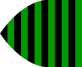The 61st flag mentioned and illustrated in the Book of All Kingdoms [f0fXX] is attributed to Mayorcas, in English Majorca, the largest of the Balears, currently part of Spain, at the time of this source part of independent Aragon (Catalonian Countries). This as depicted in the 2005 Spanish illustrated transcription [f0f05] as a vertically striped flag in the ogival default shape of this source, with six green stripes alternating with six black ones (green at the hoist).
