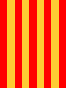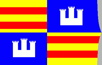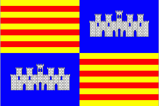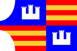 La Quarterada ("The quarterly-divided one") is a flag derived from the coat of arms of the city of Palma de Mallorca. But the pallets have turned to bars. So we have in the end a “Senyera” forming the 1st and 4th quarter. In the 2nd and 3rd quarter is the silver (white) Almudaina castle in a blue field. Gabriel Bibiloni claims, however, that this flag never had existed and would be a mere invention of Benito Pons y Fabregues.