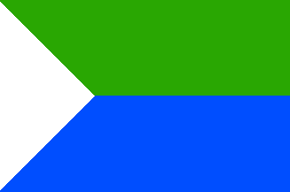 Flag of the island of El Hierro ("Iron island"). It can be used with a little shield in the point of the triangle between the two horizontal stripes.