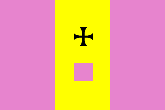 Keywords: foradada | cross: paty (black) | triband (pink-yellow-pink) | square (pink) |