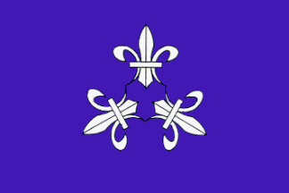 A blue flag with three white fleurs-de-lys conjoined. Colours and fleurs-de-lys from the city arms, as it appears in the city webpage.