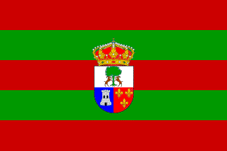 Coat of arms: Per fess, 1. Argent a tree vert accosted by two wild goats proper, 2a. Azure a tower argent masoned sable, 2b. Gules three fleurs-de-lis or. The shield surmounted with a Royal Spanish crown.