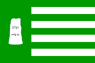 Flag: Rectangular flag, with proportions 2:3, made of nine equal horizontal stripes, five green and four white in turn, and a green vertical stripe of 1/3 the flag's length placed along the hoist with a white stele and black writing.
