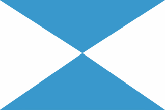 The official flag consists of two colors, blue and white, in saltire. The white is lateral, the blue atop and below.