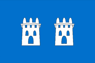 De azur con dúas torres en branco.