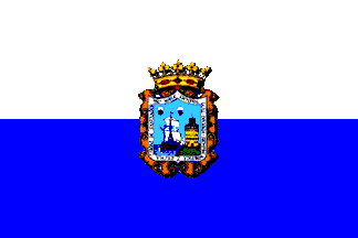 I spent some days in Cantabria in August 2000. Santander, capital city of that single-province autonomous community, has a flag of white over blue with the coat-of-arms on its centre. I found a coat-of-arms at the city's official website. The coat-of-arms on the flag has an elaborate cartouche, unlike the one shown image by Eduardo Panizo in his website.