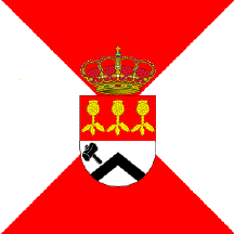 Coat of arms: Per fess, 1. Gules three thistles or, 2. Argent a chevron sable in chief a sledgehammer of the same. The shield surmounted with a Royal Spanish crown.