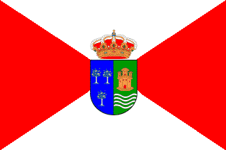 Flag: Quartered per saltire gules and argent [red and white] charged with the municipal coat of arms. The shield surmonted by the Royal crown of the Spanish Monarchy.