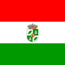 Flag: Of quadrangular shape, like municipal flags. With three stripes perpendicular to the hoist, and the shield. The upper stripe red, the central stripe white and the lower stripe green. The coat of arms is placed in the center on the white stripe and at the midpoint of the hoist and the fly. The colors shall be as described in the proposal.