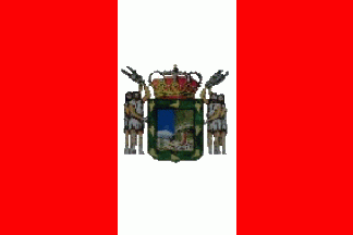 A vertically-divided red-white-red flag with the coat of arms in its centre. The stripes have equal width. I spotted this flag on top of the town hall on 23 January 2007. According to HIdC there was the same flag granted but without the coat of arms.