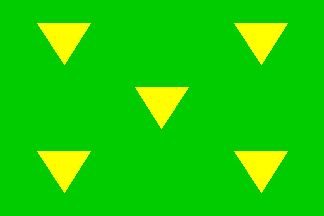 Flag: Quadrangular flag, green with five golden splinters [astillas] per saltire.